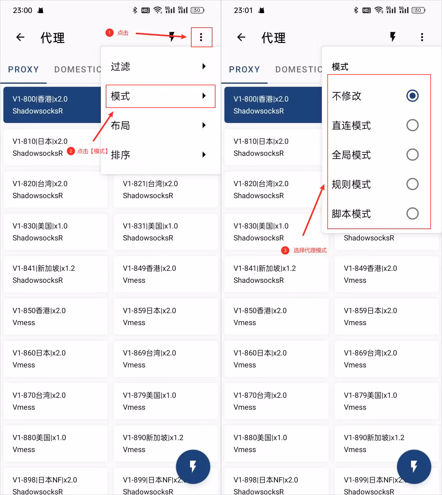 切换clash for android代理模式